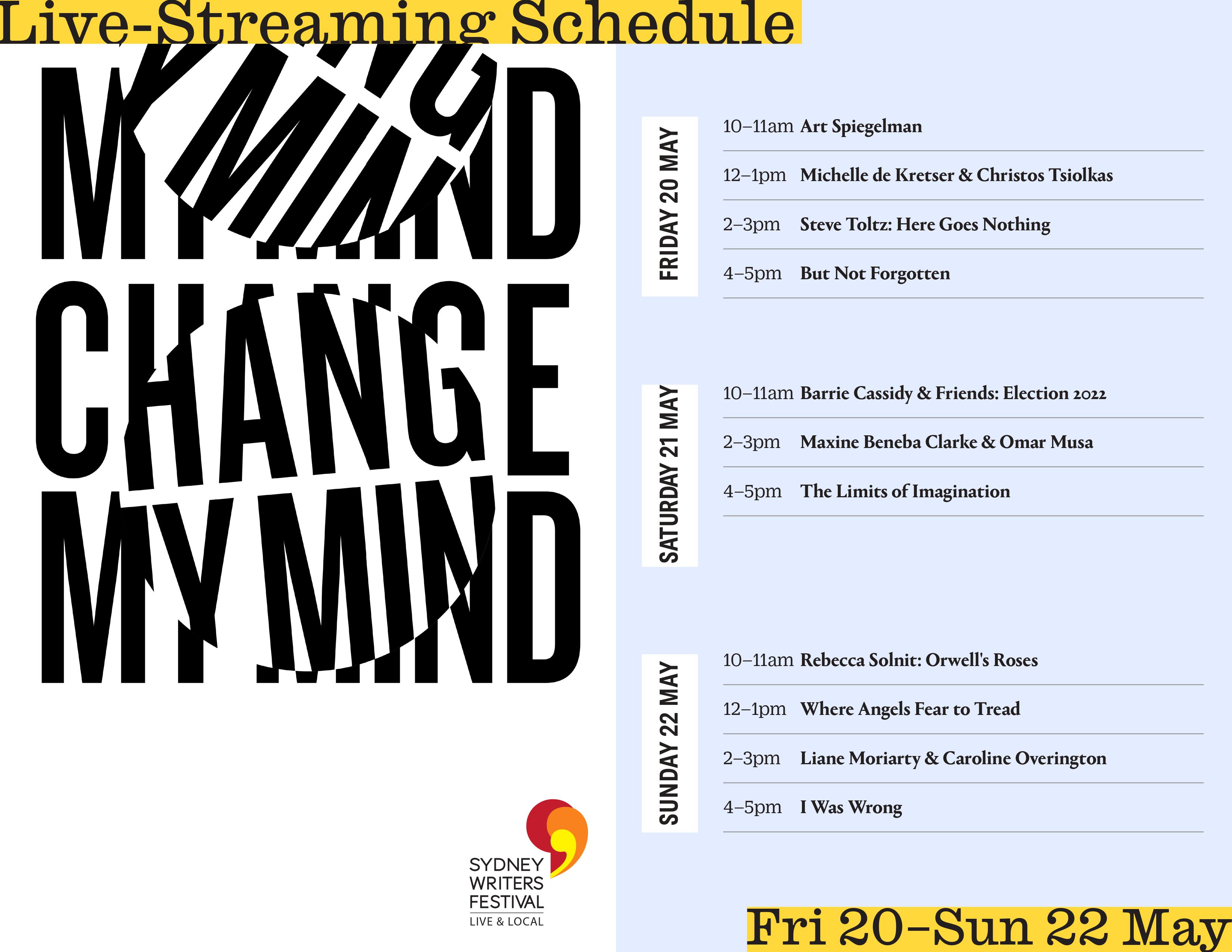 Sydney Writers’ Festival Live Streaming event – Avalon restaurant, Katoomba. Friday May 20th- Sunday May 22nd 2022